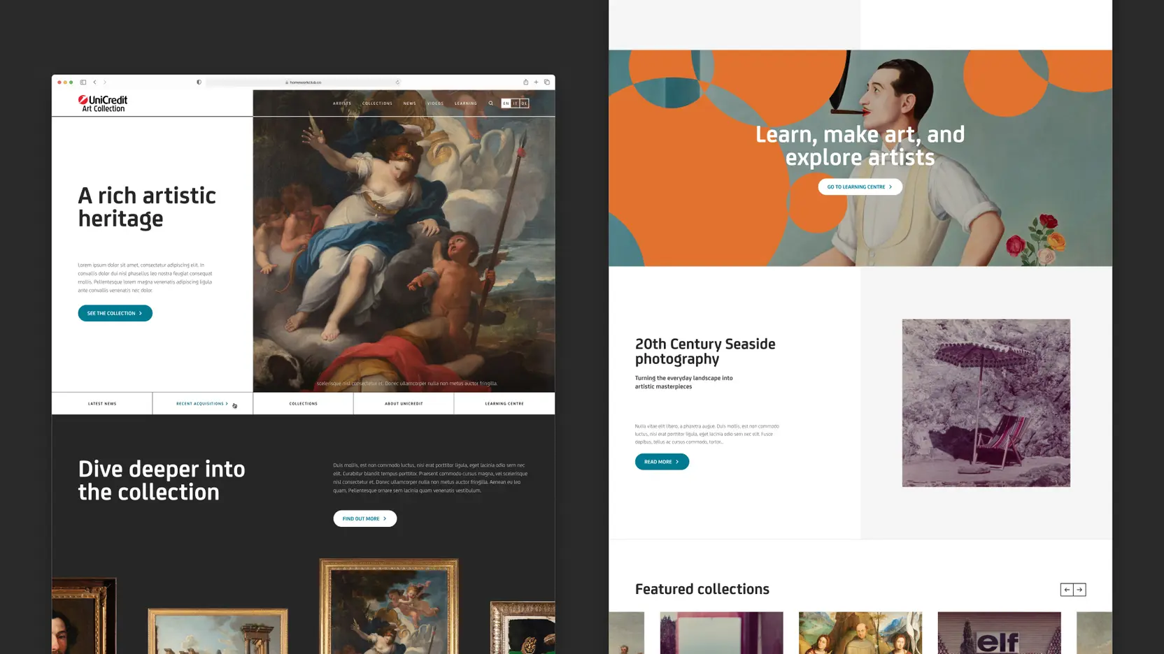 UniCredit Art Collection is a multinational bank’s prestigious art collection. As part of my role in the Artlogic design studio, I designed and developed a bespoke website on Artlogic CMS to elevate and promote the collection, making it more accessible to a wider audience.